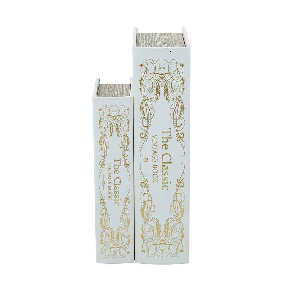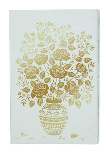 Decorative Book Box with White and Gold Floral Motifs and Text Large 7" x 10.5"