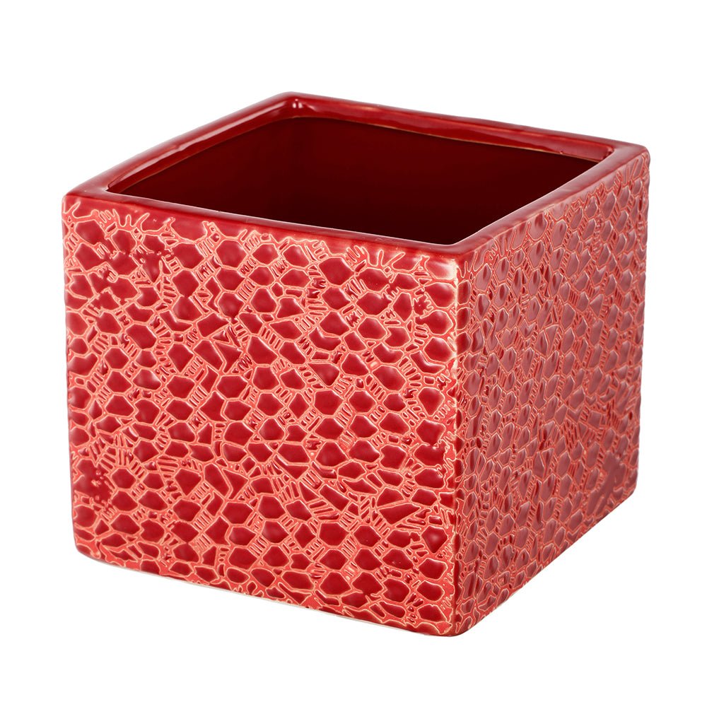 Square Red Vase 5.5" x 5.5" x 5"