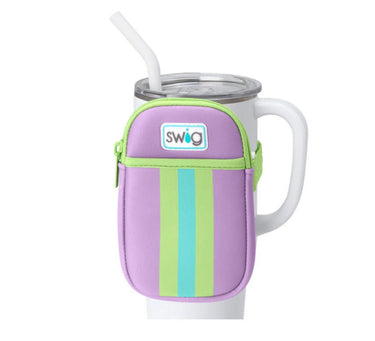 Crafted from durable, high-quality 3mm thick neoprene, this pouch is compatible with Swig's 30oz and 40oz Mega Mugs, as well as most handled tumblers, mugs, and water bottles with diameters ranging from 3.5" to 4".