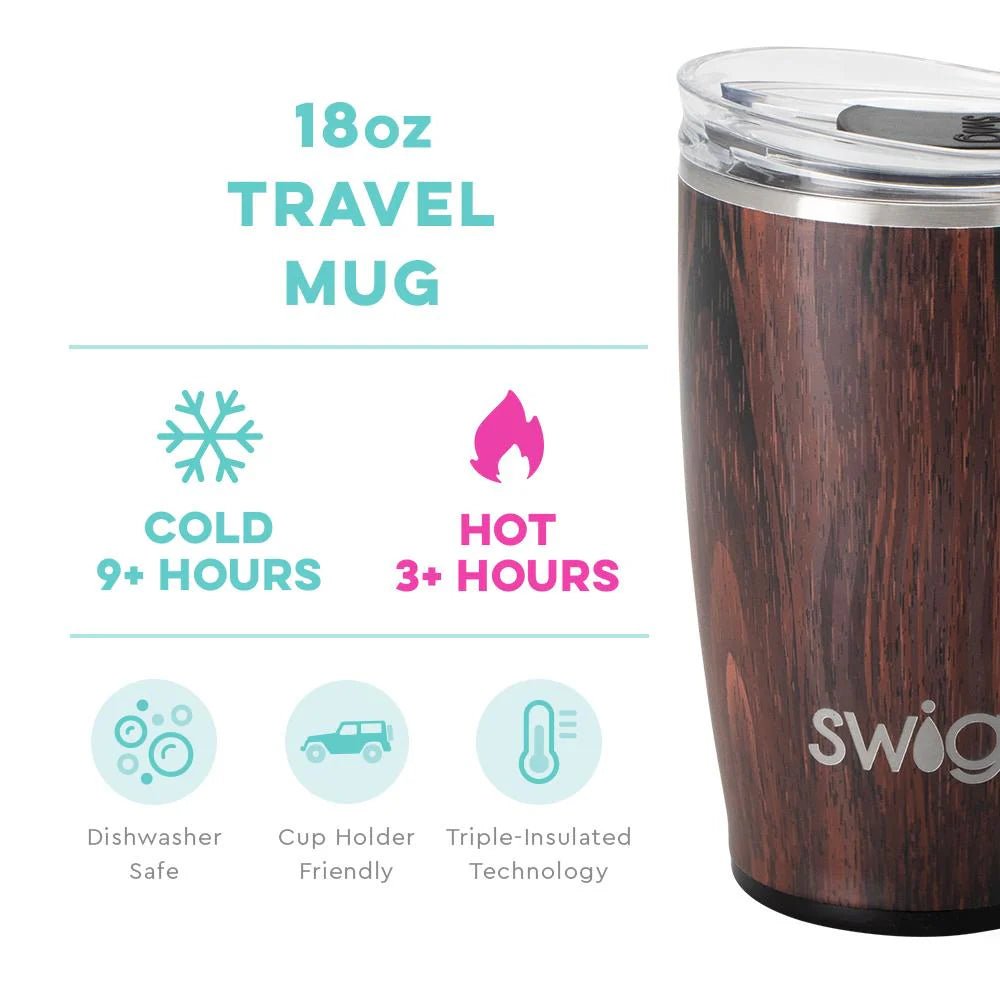Take a "swig" of your favorite beverage, no matter where your day takes you! Our 18oz Insulated Travel Mug in a stunning Bourbon Barrel finish is designed for those who are always on the go. Whether you're heading to the classroom, the office, or just relaxing at home, this travel mug is your perfect companion.