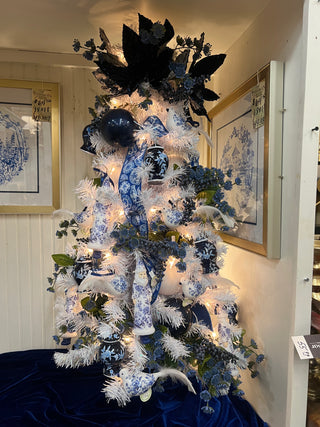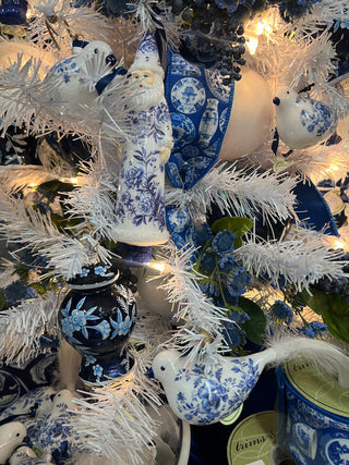 Step into timeless elegance with our Porcelain Palace Christmas collection. This blue and white chinoiserie-inspired tree features delicate Santa ornaments, classic jar designs, and rich blue berry accents—bringing a sophisticated twist to holiday tradition.