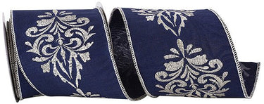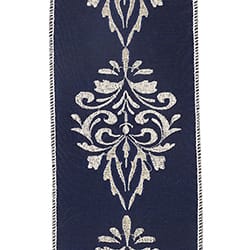 Crest Dupioni Wired Ribbon Navy/Silver 4" x 5 Yd