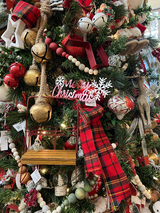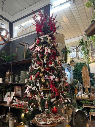 Escape to a cozy mountain lodge this holiday season with our Rustic Retreat Christmas collection. Featuring charming deer, ski lift, and ice skate ornaments, this red, green, and white tree captures the warmth of winter adventures. Accented with classic red plaid ribbon and rustic touches, it's the perfect blend of alpine charm and holiday spirit.