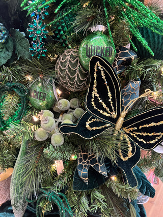 Step into a world of magic and contrast with our Spells and Sparkles Christmas Tree. Inspired by the enchanting movie and hit Broadway musical, this show-stopping tree features one half in moody emerald tones with witchy, mysterious ornaments, and the other in soft, blush pink adorned with sparkling, feminine details. A bewitching blend of drama and charm—perfect for those who believe every story has two sides.