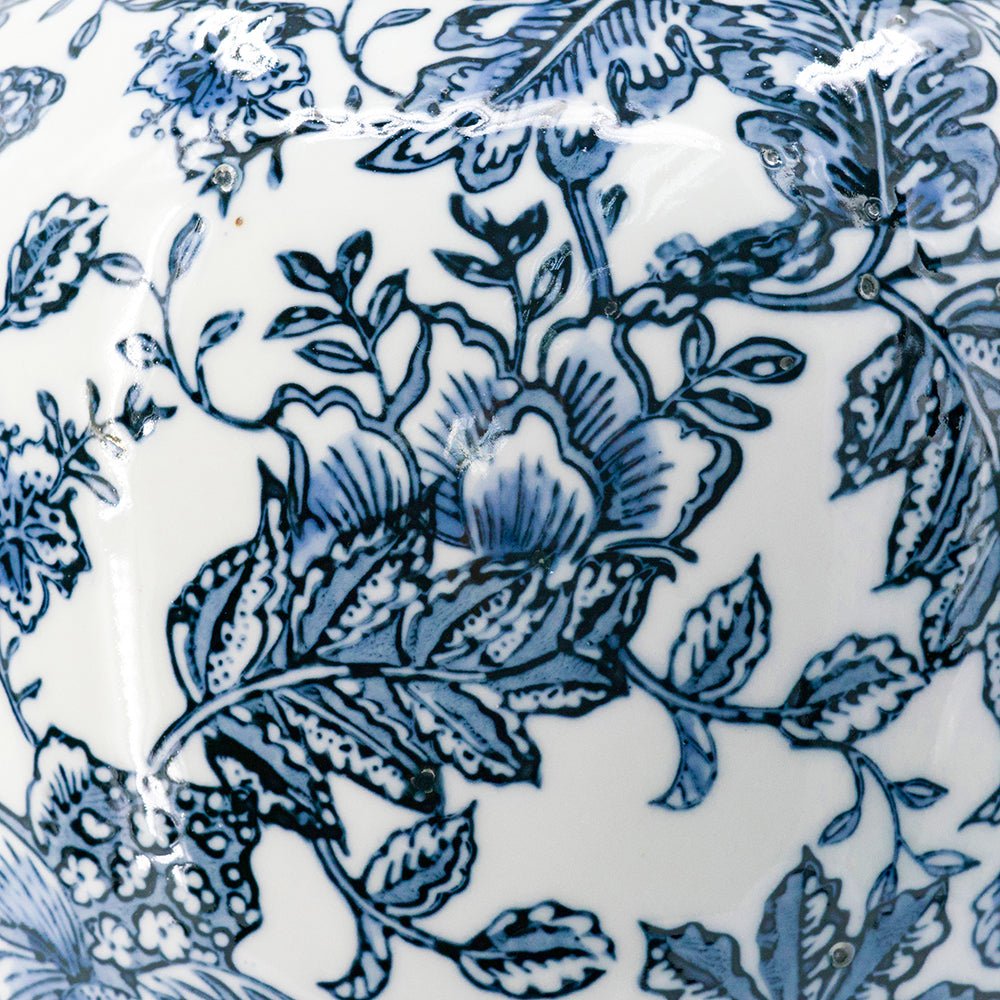 Blue-White Porcelain Chinoiserie Ginger Jar 9.5"D x 18"