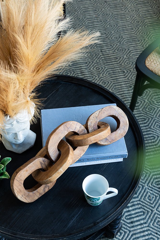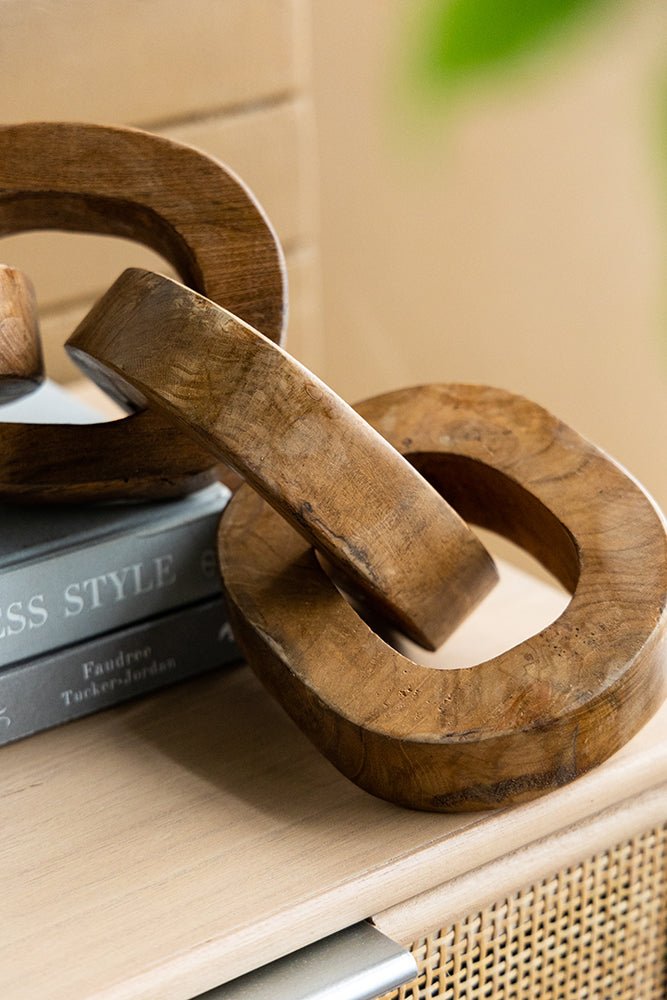 Add a dynamic home decor piece to your home’s design scheme with the Set of 2 Teak Chain Decor. Made from 100% teak root, this pair of statues are versatile enough for use all throughout your home. Get creative with placement by situating them in your living room or in a neighboring hallway.