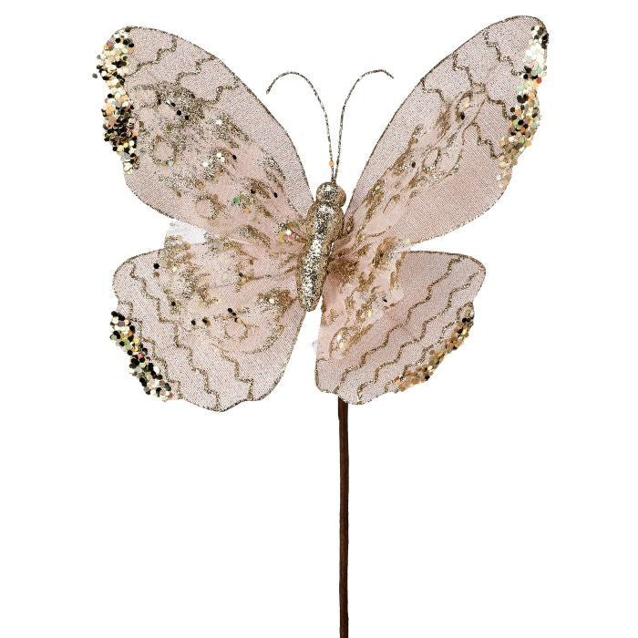 Blush Sheer Organza/Sequin Butterfly Stem 17"