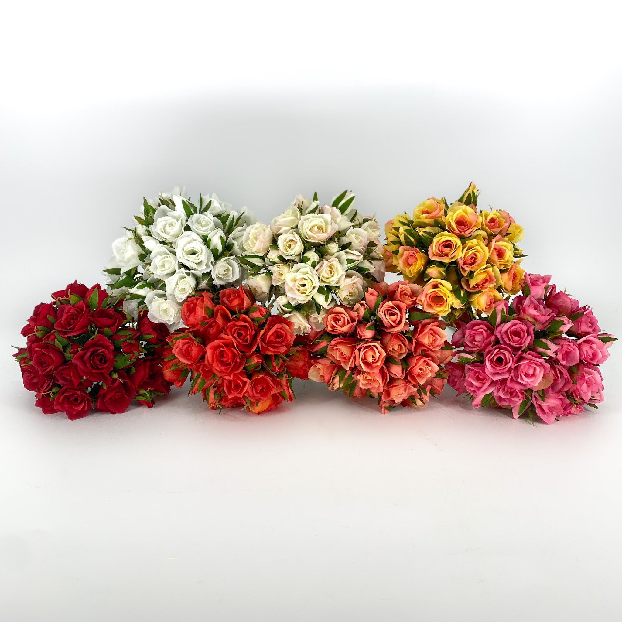 Our 12” rose bundles feature numerous petite rose blooms and buds, complete with realistic leaves, all fastened together with a simple hand tie.