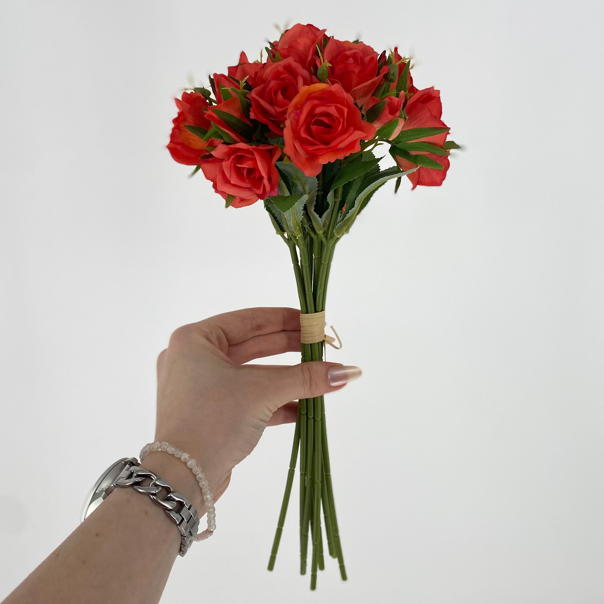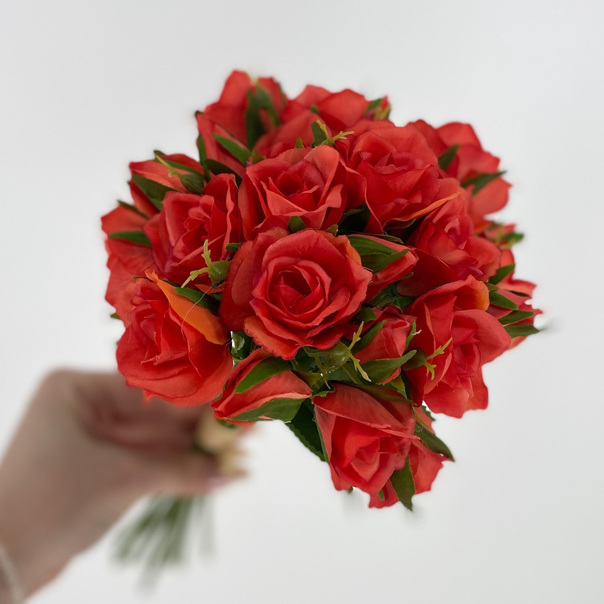 Our 12” rose bundles feature numerous petite rose blooms and buds, complete with realistic leaves, all fastened together with a simple hand tie.