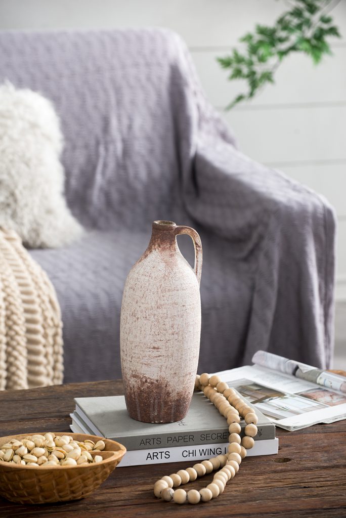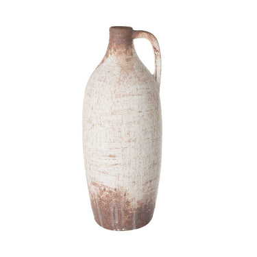 Distressed White-Brown Jug Shaped Vase 5"D x 12"H