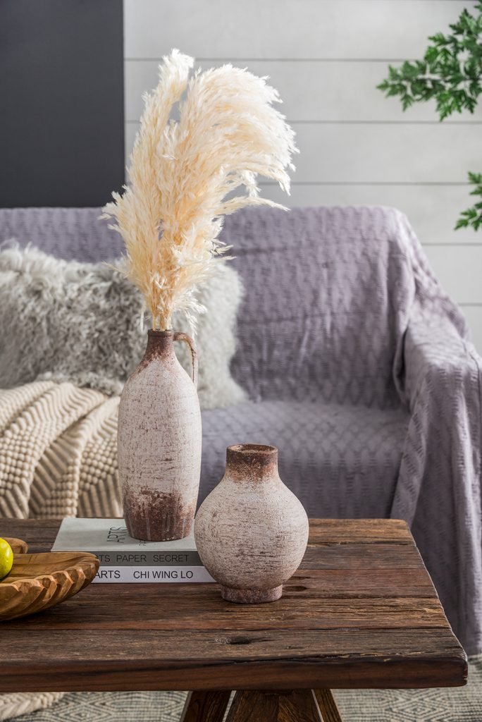 This vase is handcrafted from high-quality ceramic and boasts a silhouette that is reminiscent of a jug. Finished with a blend of earthy white and brown tones, it is sure to slot into almost all interior styles and motifs without overwhelming the space on your tabletop, countertop, or mantel. Place a small collection of long-stemmed florals inside the tight opening.